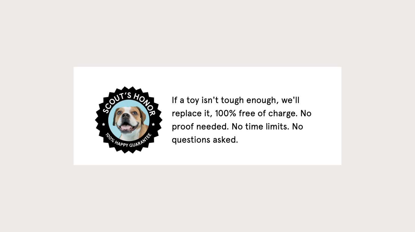 While places like the FAQ and post-purchase, pre-shipment phase could use some love, the BarkBox brand voice is unapologetically humorous, thoughtful, friendly, and joyful. Balancing the meta with the punny isn’t something you see too often—the fact that it’s for adorable dogs is the cherry on top.