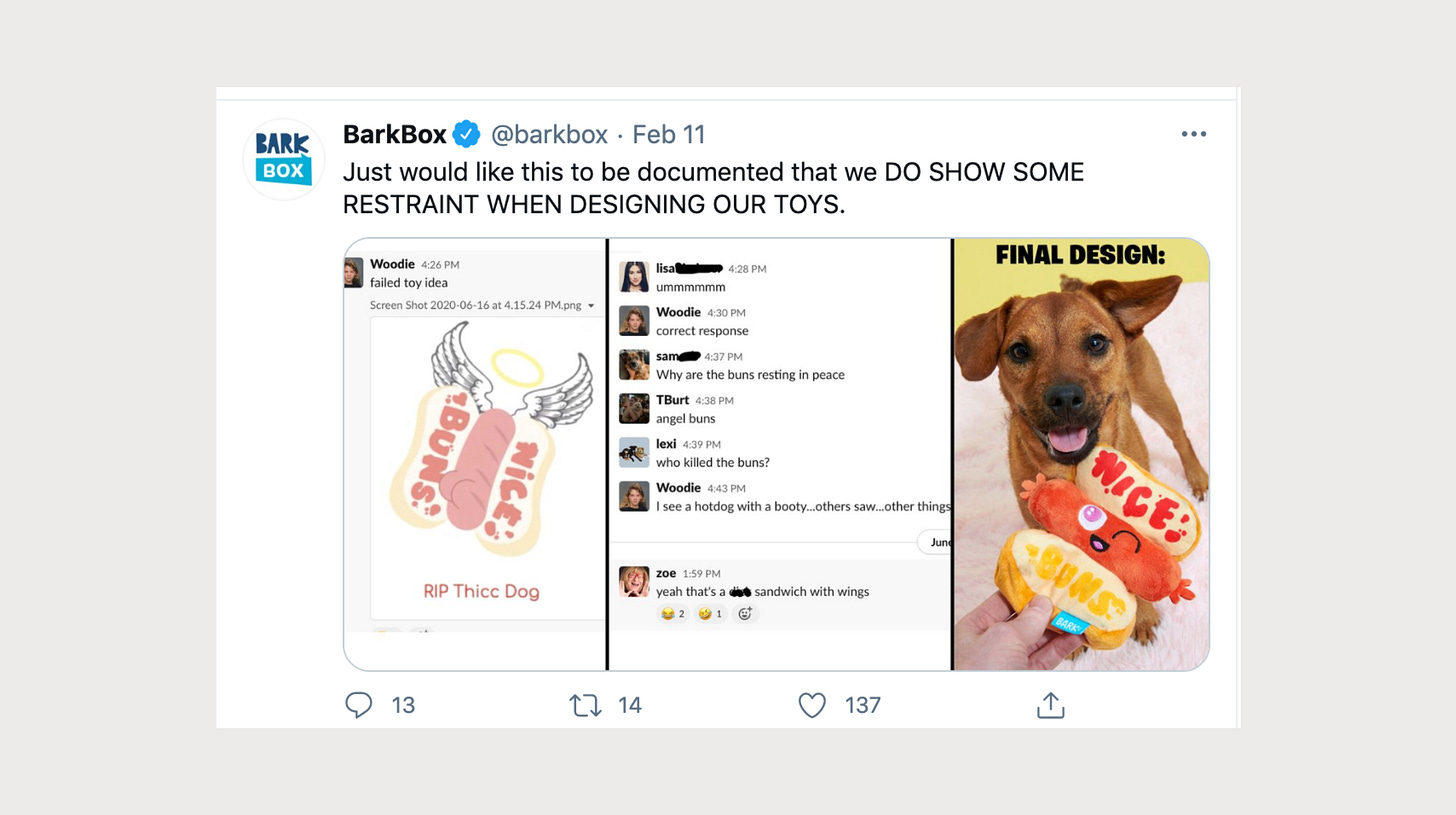 I’ll admit it. When I first became aware of BarkBox’s social presence, I wasn’t sold. Puns and pop-culture references aren’t always my thing. Yet, the more I looked into the voice the more I loved it. With an eye for detail, an expansive sense of humor, and enough energy for ten Jack Russells, the BarkBox brand voice is almost always hitting home runs.